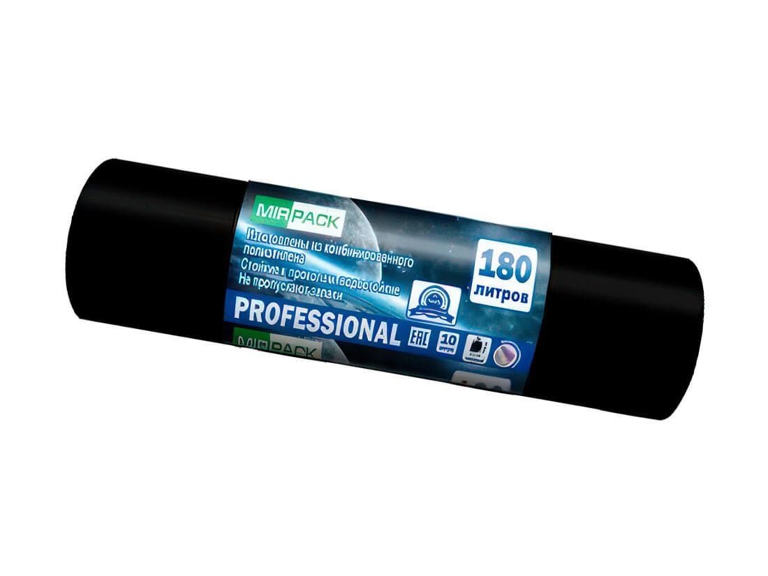 Мешки для мусора 180 л, ароматизированные, черные, в рулоне 10 шт., ПВД, 30 мкм, 1100х930 мм, PROFESSIONAL, 1801044