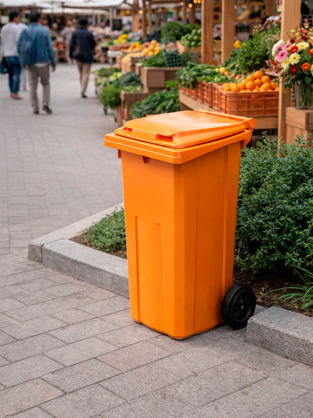 Контейнер для мусора 120 л на колёсах с крышкой, оранжевый — повышенная видимость и системный контроль отходов